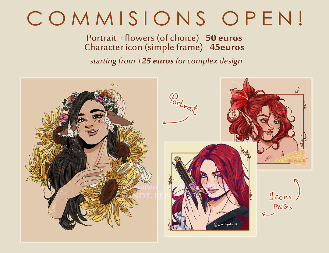 To request a commission, please check the example and their prices below, then fill the Google form at the end of the page!